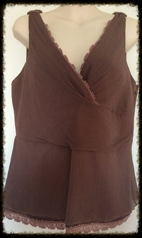 Pure silk blouse, fully lined with polyester. Lace trim inside and out. Excellent condition. Size 14.